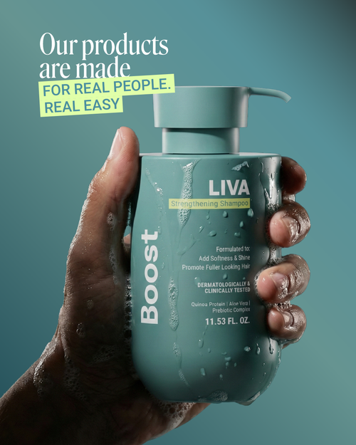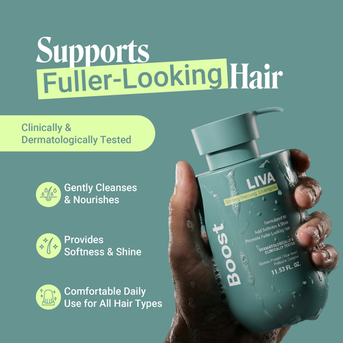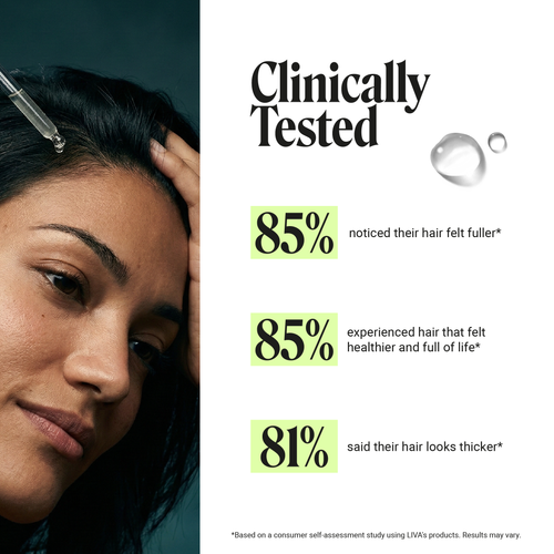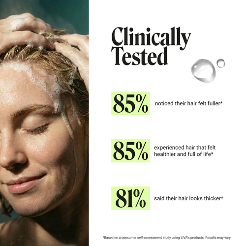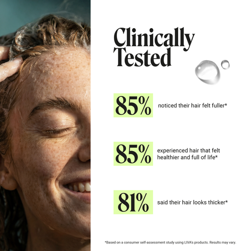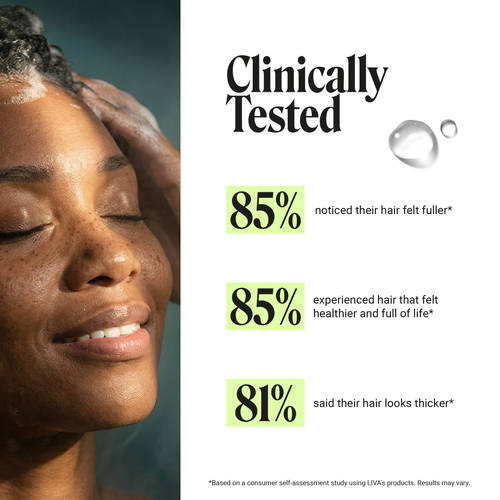 From root to ends, LIVA is here with care that helps your hair feel healthier and thicker-looking, every step of the way.